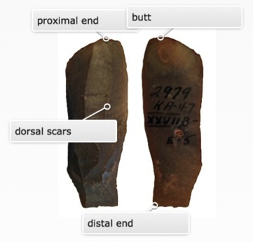 Blades are oriented exactly the same as flakes, with the bulb of percussion down and the dorsal surface up